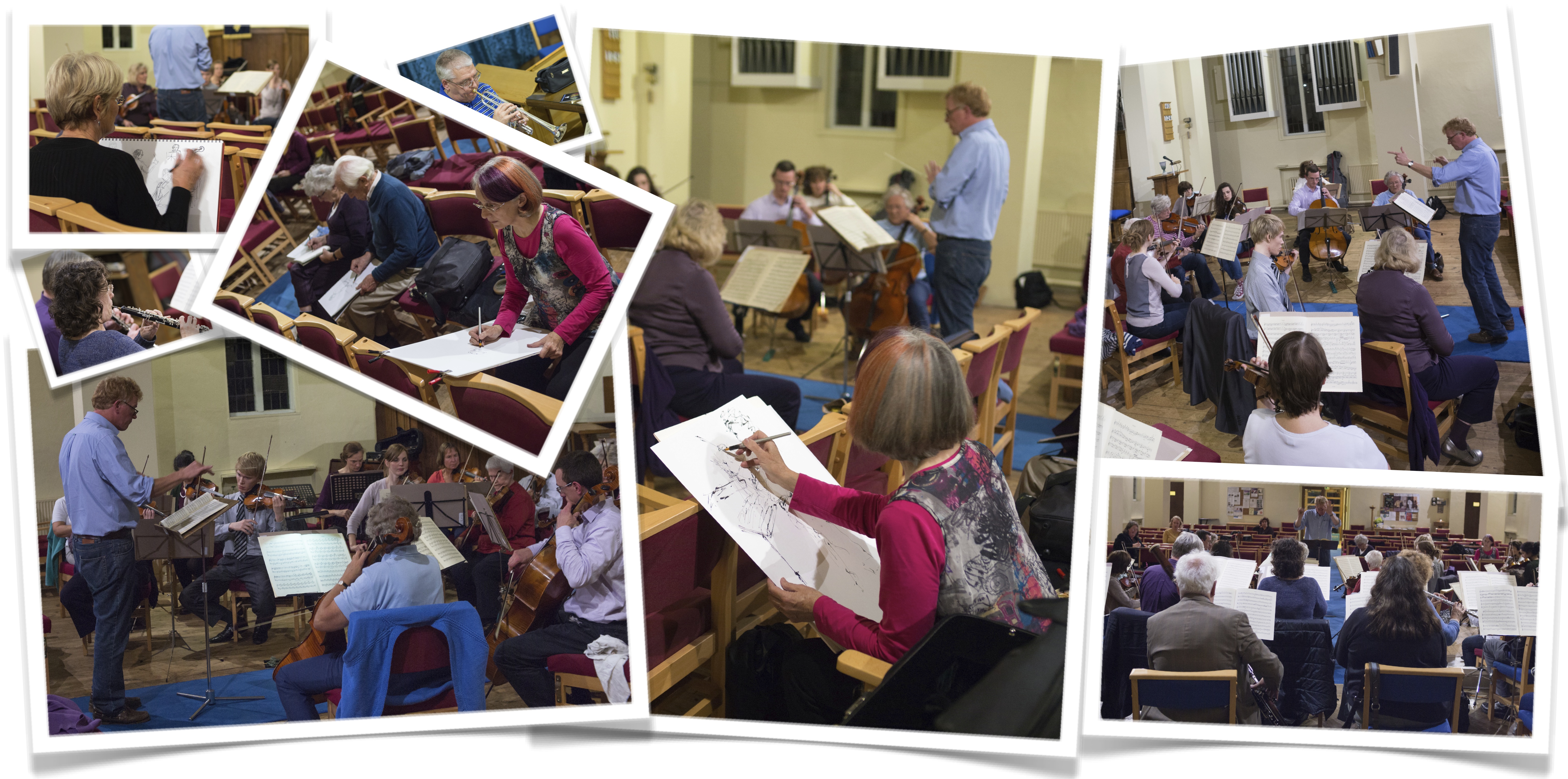This event was not a public concert, but instead, as part of Arts Alive , it was a Come & Play Open Rehearsal held at Christ Church, Leatherhead, Surrey. As an extra twist, local artists were invited to come and sketch us.